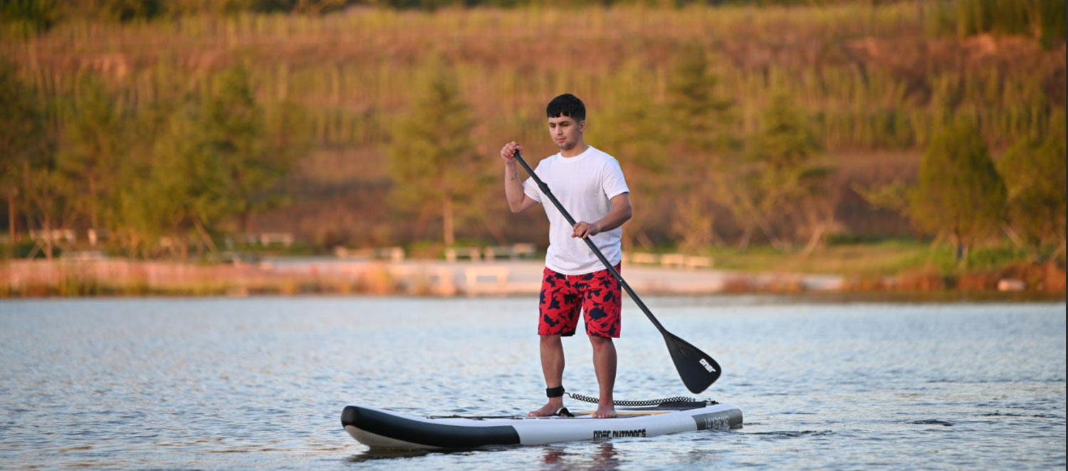 Гоночная доска изготовлена из тканого армированного материала, который легче и жестче, чем обычные материалы для сшивания, что делает ее идеальным выбором для любителей гоночных досок. Его ласты также более жесткие и изготовлены из лучшего материала, чем у обычных досок, что позволяет развивать большую скорость в воде и помогает гонщикам преодолевать препятствия. Передняя часть доски украшена прочными эластичными шнурами и ножками из EVA для противоскользящего захвата, а задняя часть украшена крупным ПВХ принтом с изображением заката - простым дизайном, который придает доске более изысканный и функциональный вид.