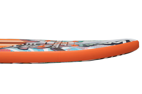 Эта доска отличается яркими цветами; оранжевый дизайн создает теплое, солнечное ощущение. Крупные принты из ПВХ на лицевой и оборотной сторонах создают сильное визуальное впечатление. Мягкие накладки из EVA собраны воедино, а общее качество изготовления невероятно детализировано и выполнено на высоком уровне, при этом не видно излишков клея. Эту доску можно использовать как доску для занятий йогой или как доску для путешествий.